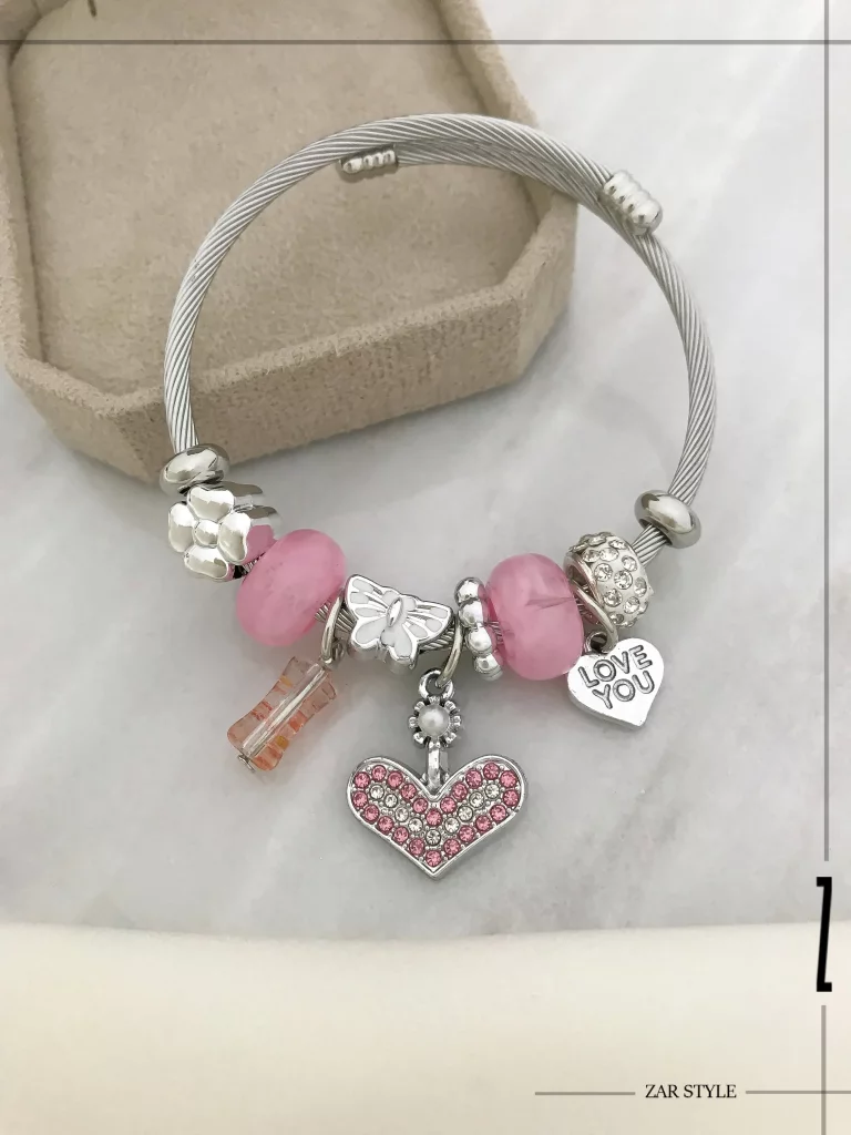 دستبند پاندورا  چارم قلب نگینی صورتی