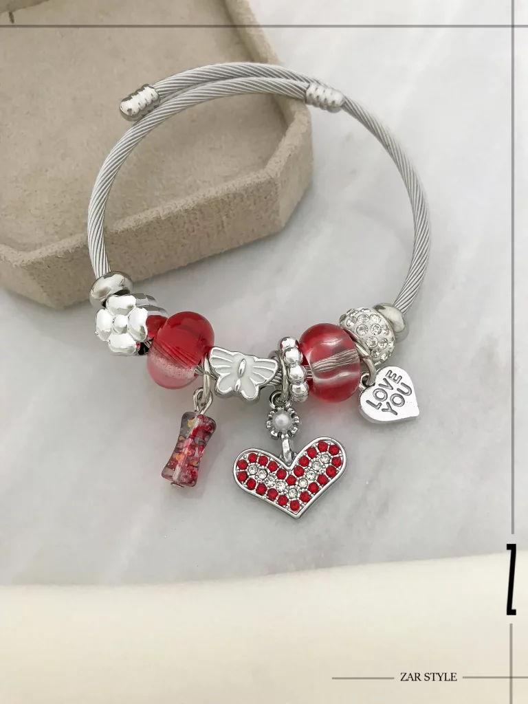 دستبند پاندورا چارم قلب نگینی قرمز