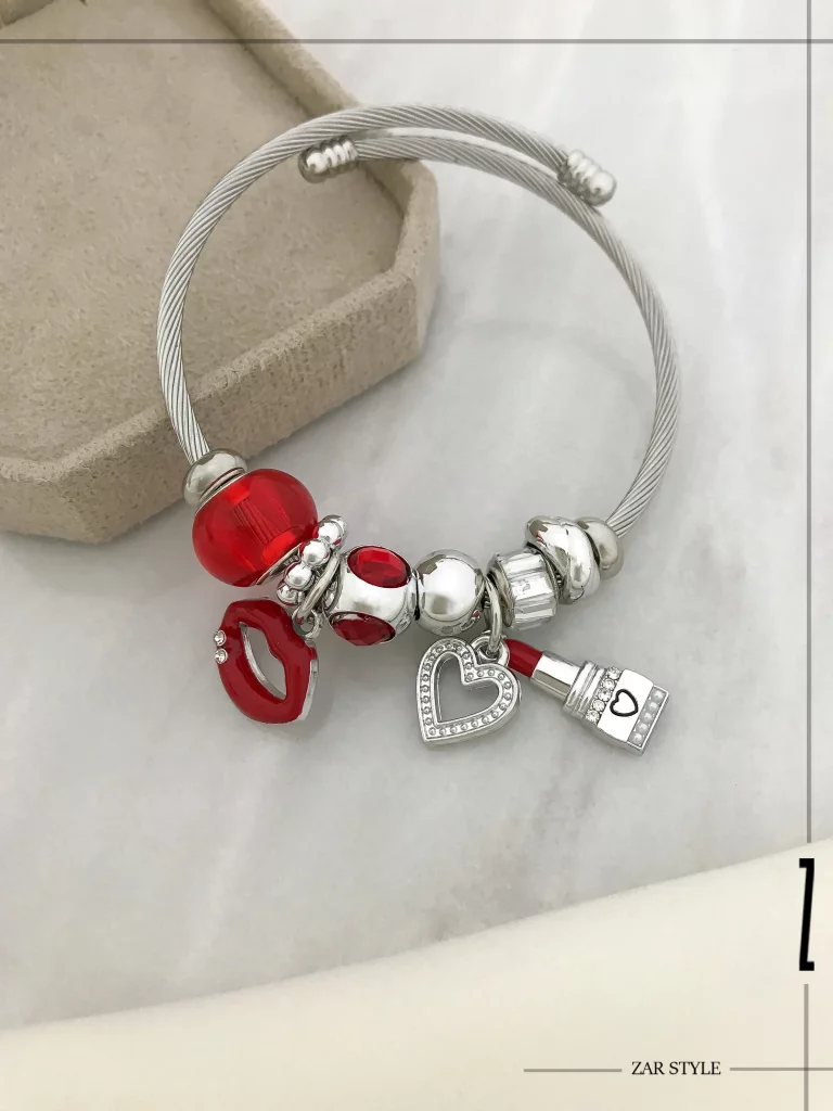 دستبند پاندورا  چارم لب و رژ قرمز