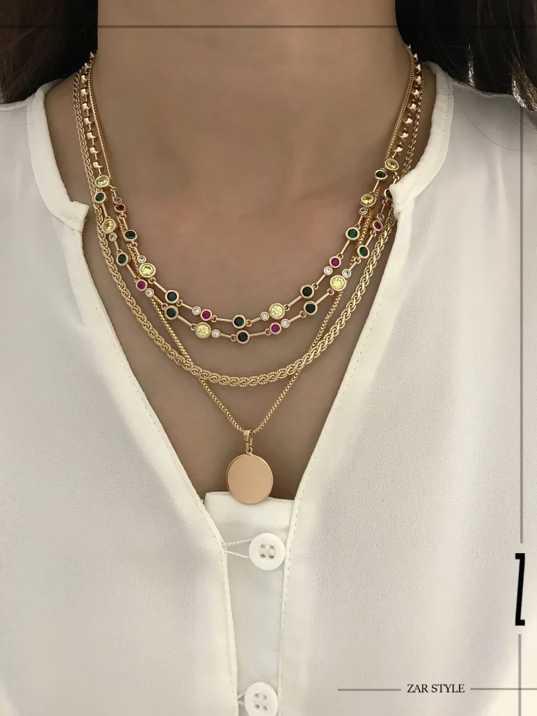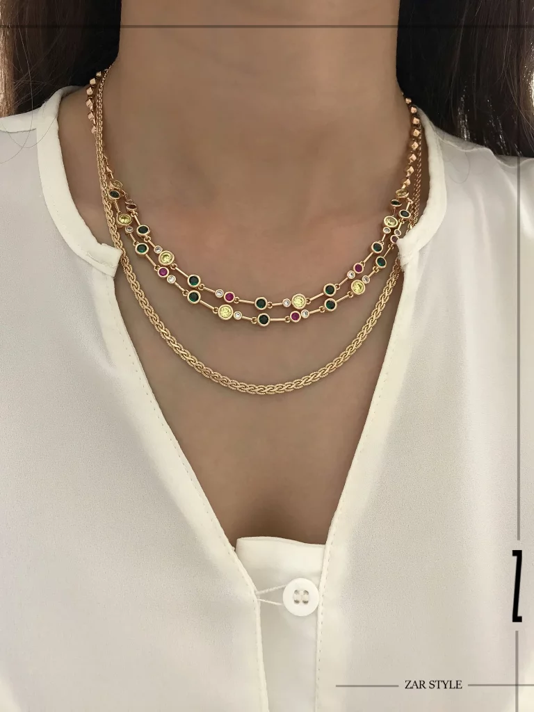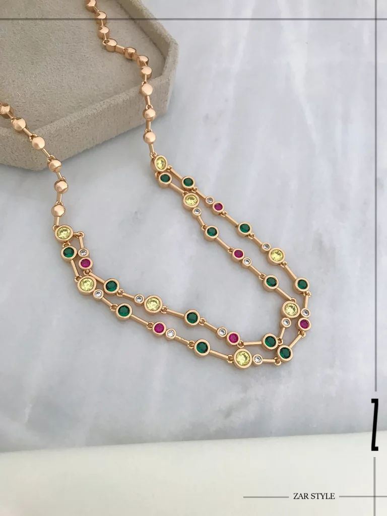 گردنبند دو لاین نگین مارکو مولتی کالر