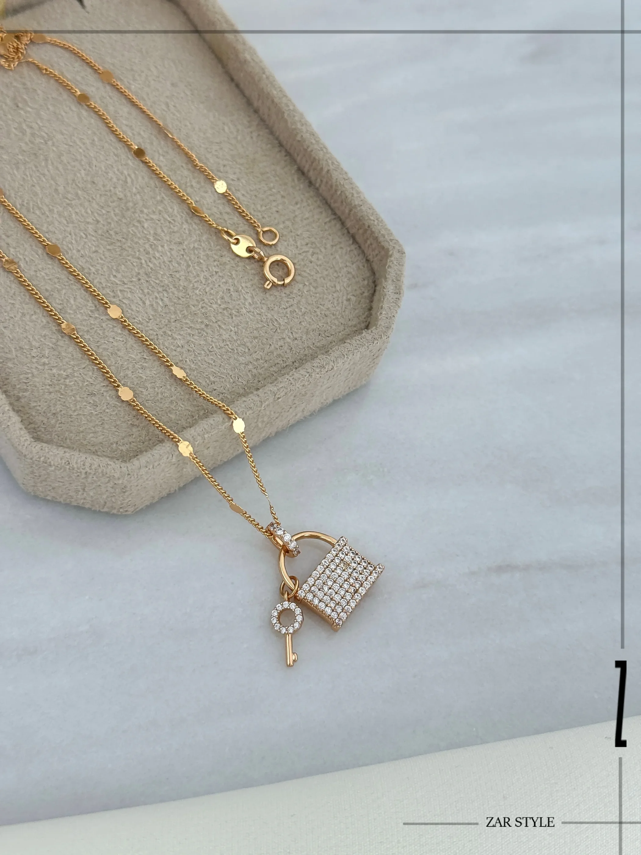گردنبند قفل و کلید نگیندار زنجیر پولکی