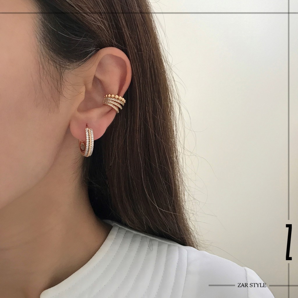 گوشواره حلقه‌ای سه لاینی نگین و پیچ
