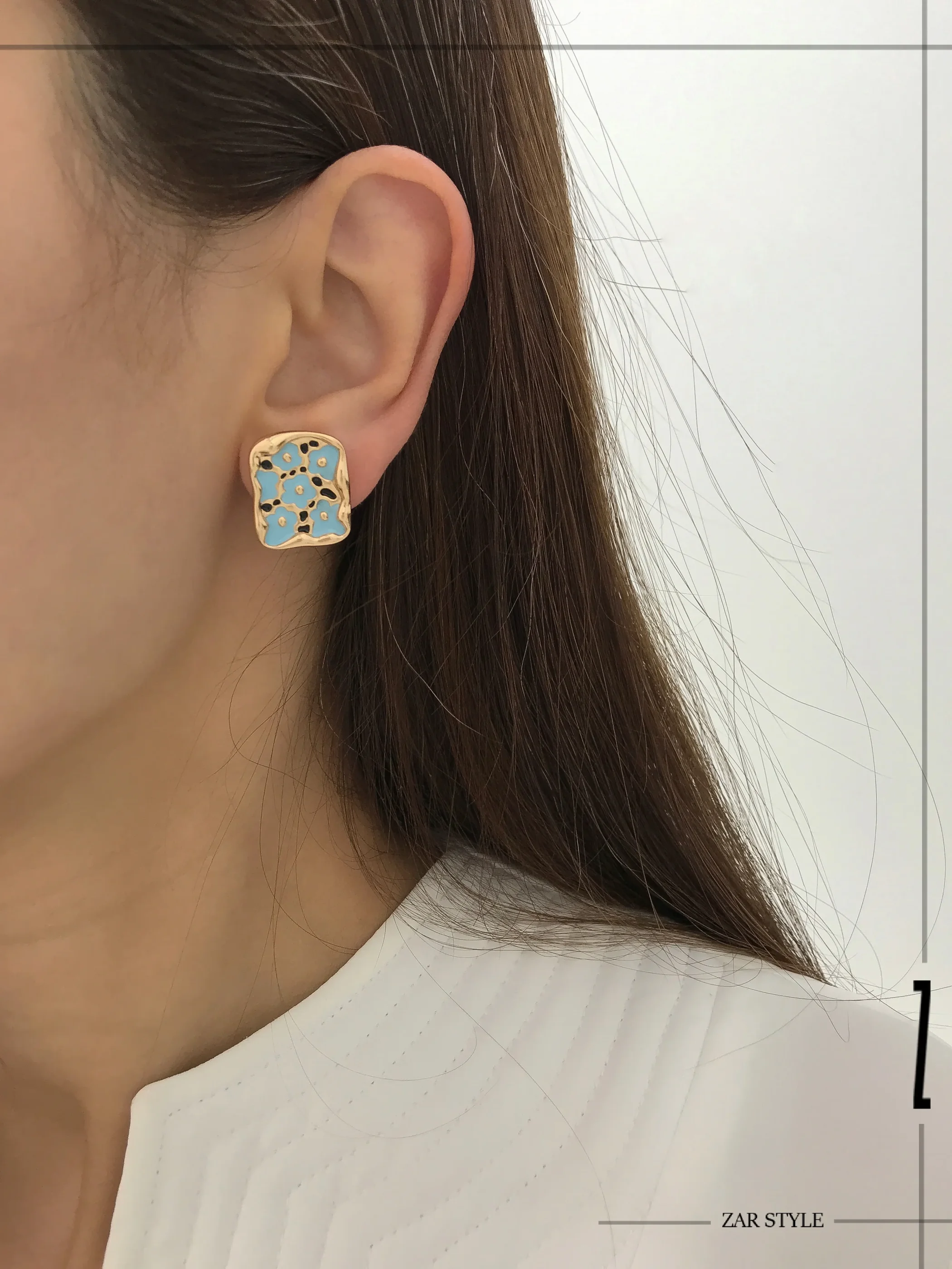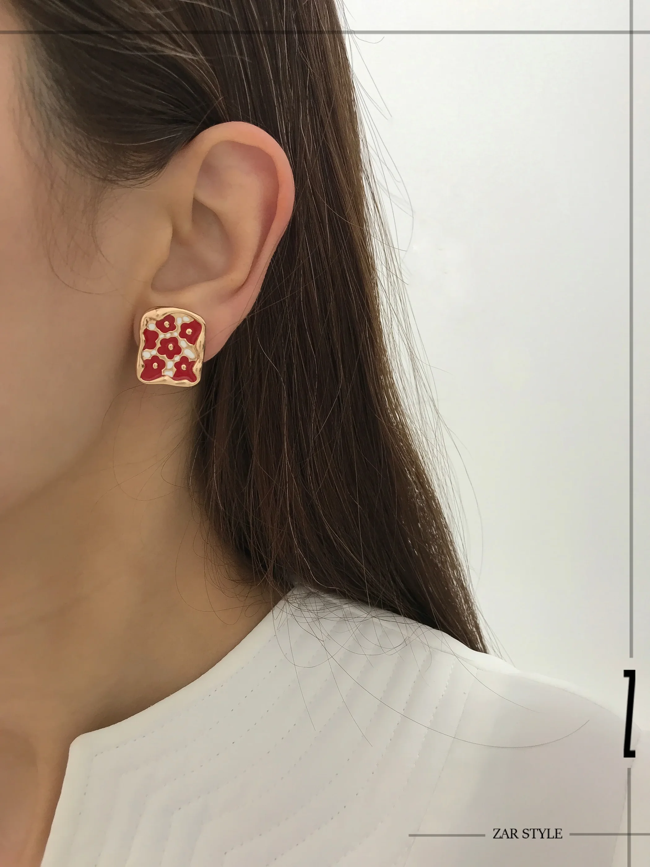 گوشواره میناکاری گلدار مستطیلی
